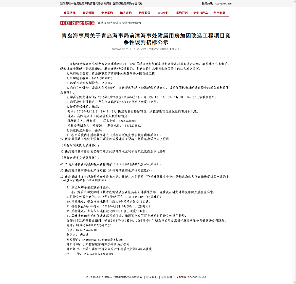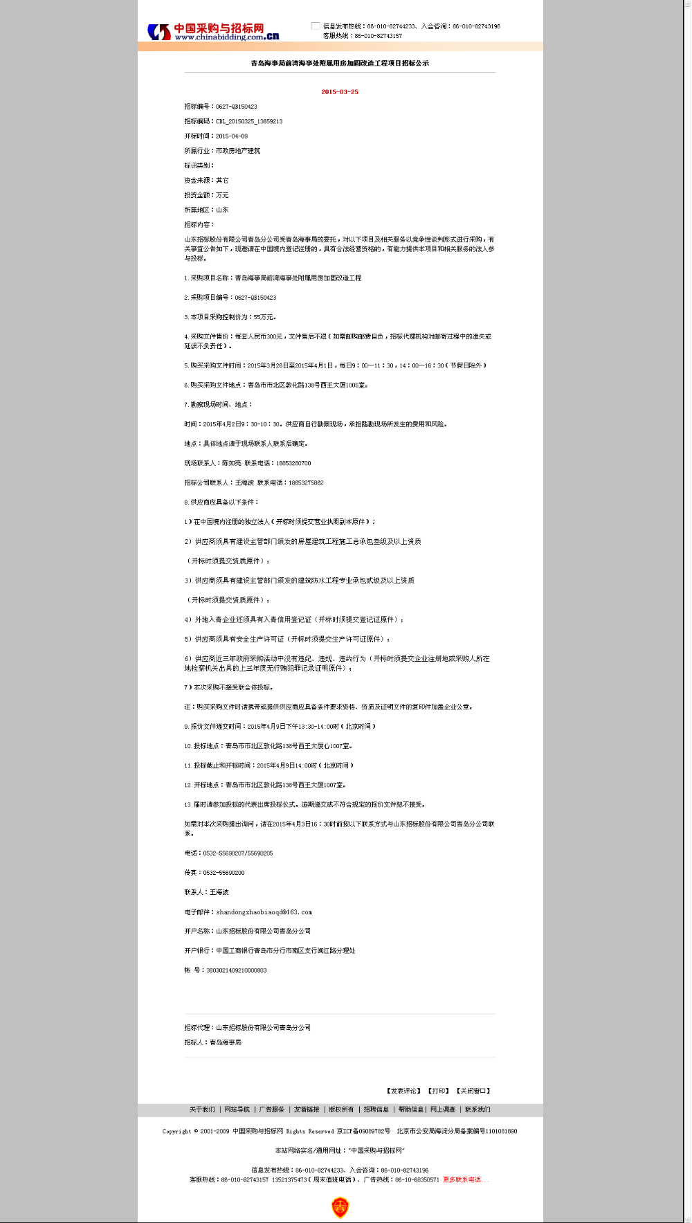 青岛海事局关于青岛海事局前湾海事处附属用房加固改造工程项目竞争性谈判公告