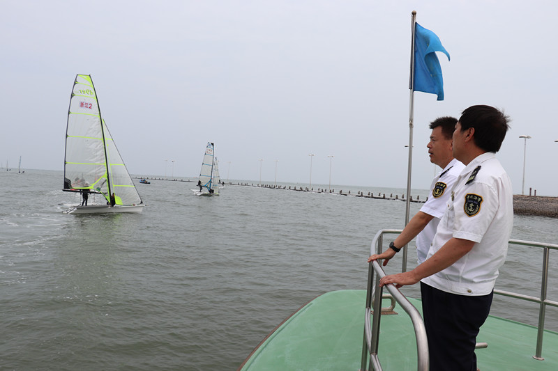 On July 9, the 29er Class Sailing Final of the 2ndNational Youth Games of the People's Republic of Chinaand the 49er National Sailing Championship opened in Rizhao. According to the requirements of the Organizing Committee of the Games, Rizhao MSA and Rizhao Marine Development Bureau were jointly responsible for maritime security during the games. In order to ensure the successful completion of the games, Rizhao MSA and RizhaoMarine Development Bureau respectively dispatched two law-enforcement ships, namely "Sea Patrol 05808" and "China Fisheries Administration 37161", to patrol at specified locations.Temporary traffic controls were conducted before and after the games to prevent tourist boats and fishing boats from entering the game waters. |
