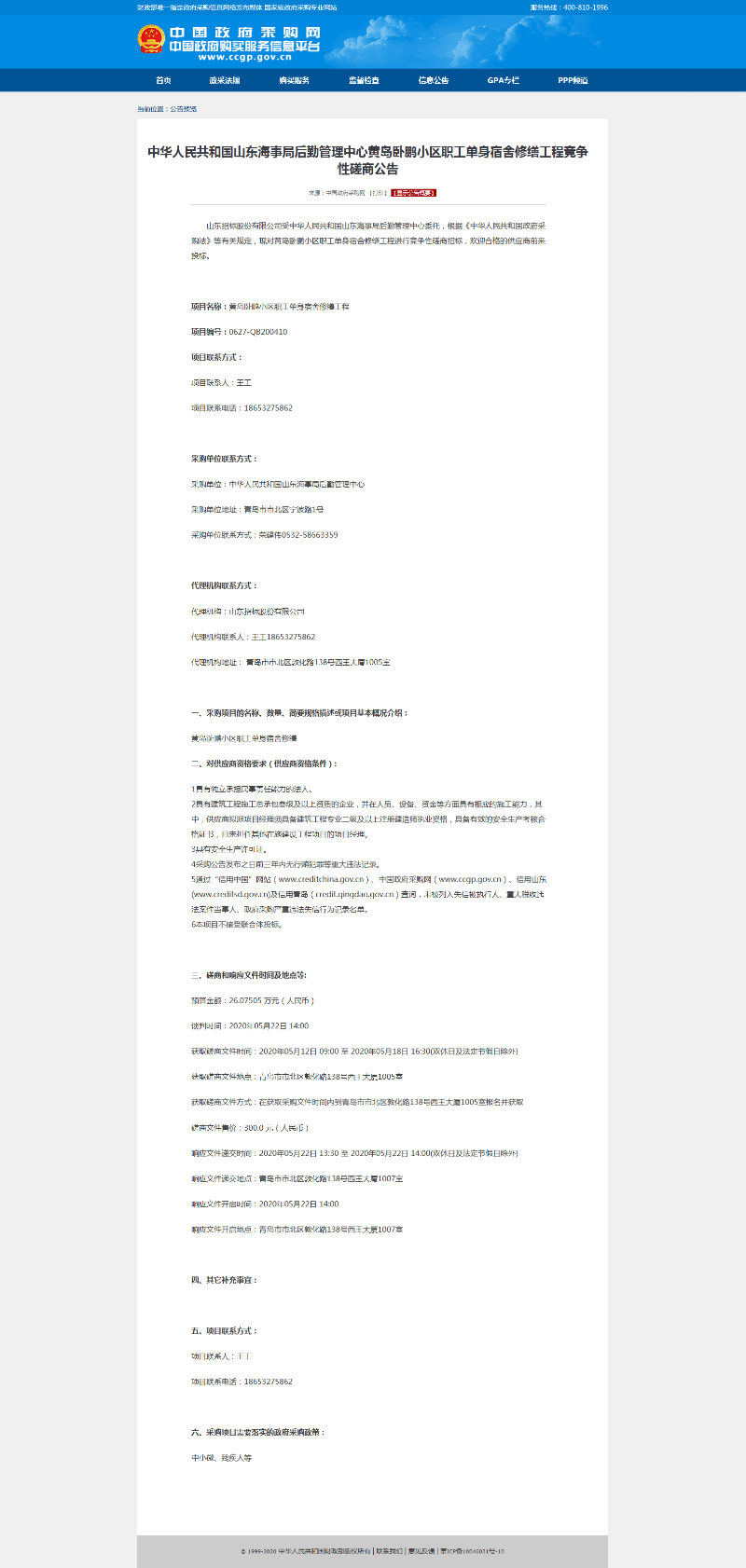 黄岛卧鹏小区职工单身宿舍修缮工程竞争性磋商公告