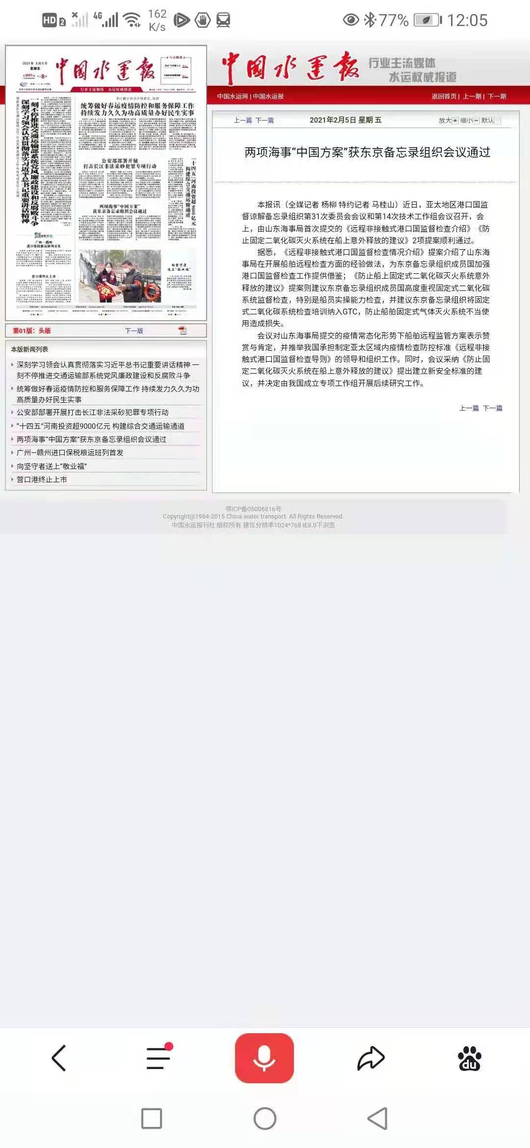 中国水运报头版:两项海事“中国方案”获东京备忘录组织会议通过