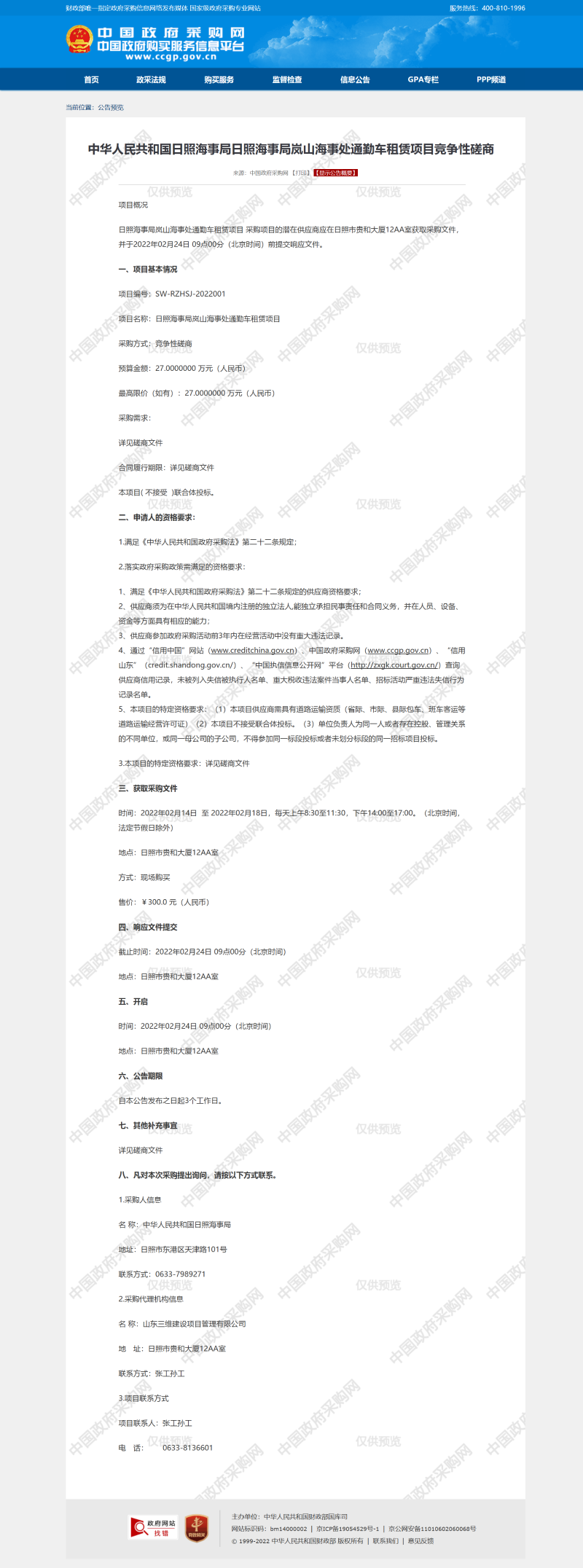 日照海事局岚山海事处通勤车租赁项目竞争性磋商公告