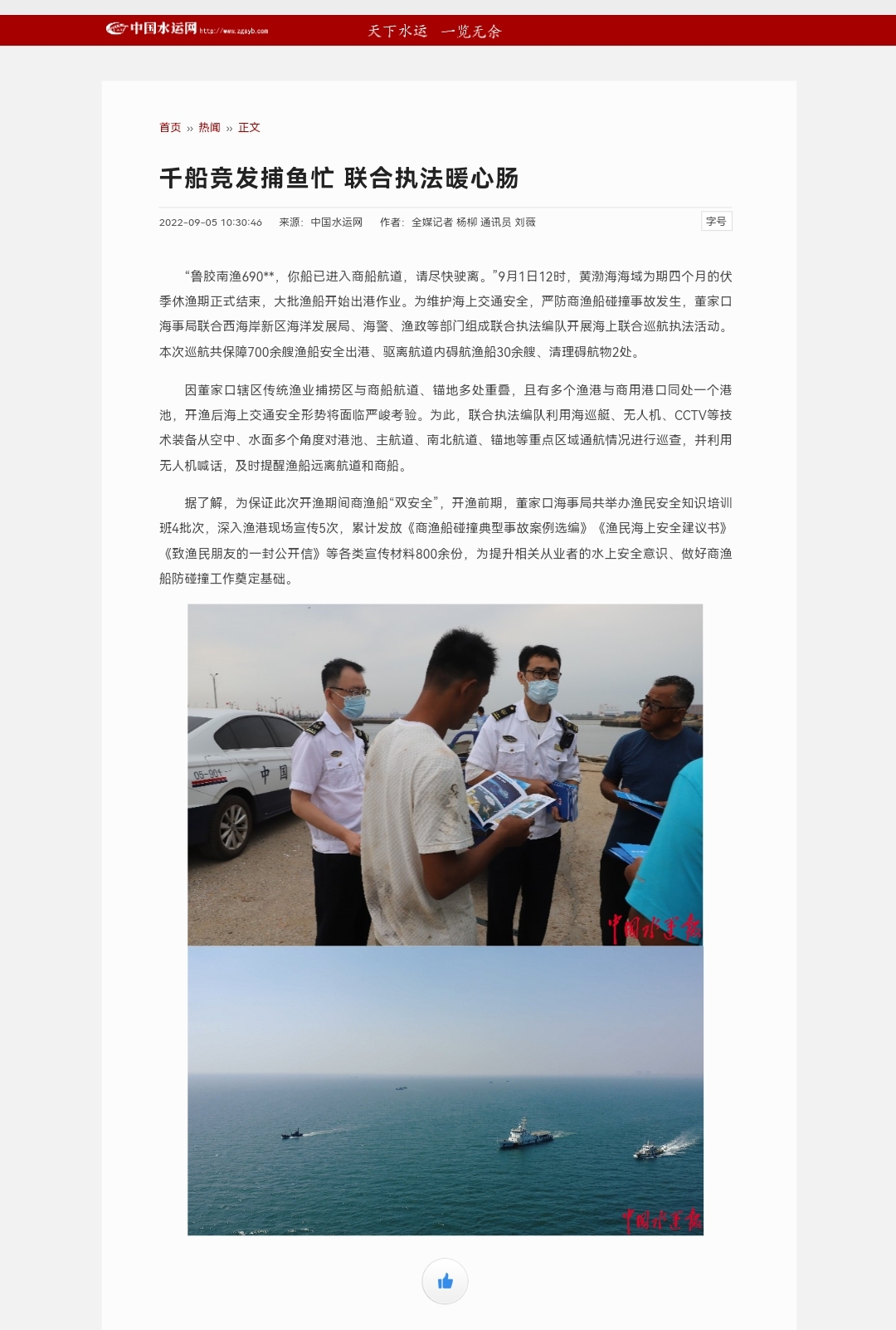 中国水运网:千船竞发捕鱼忙 联合执法暖心肠
