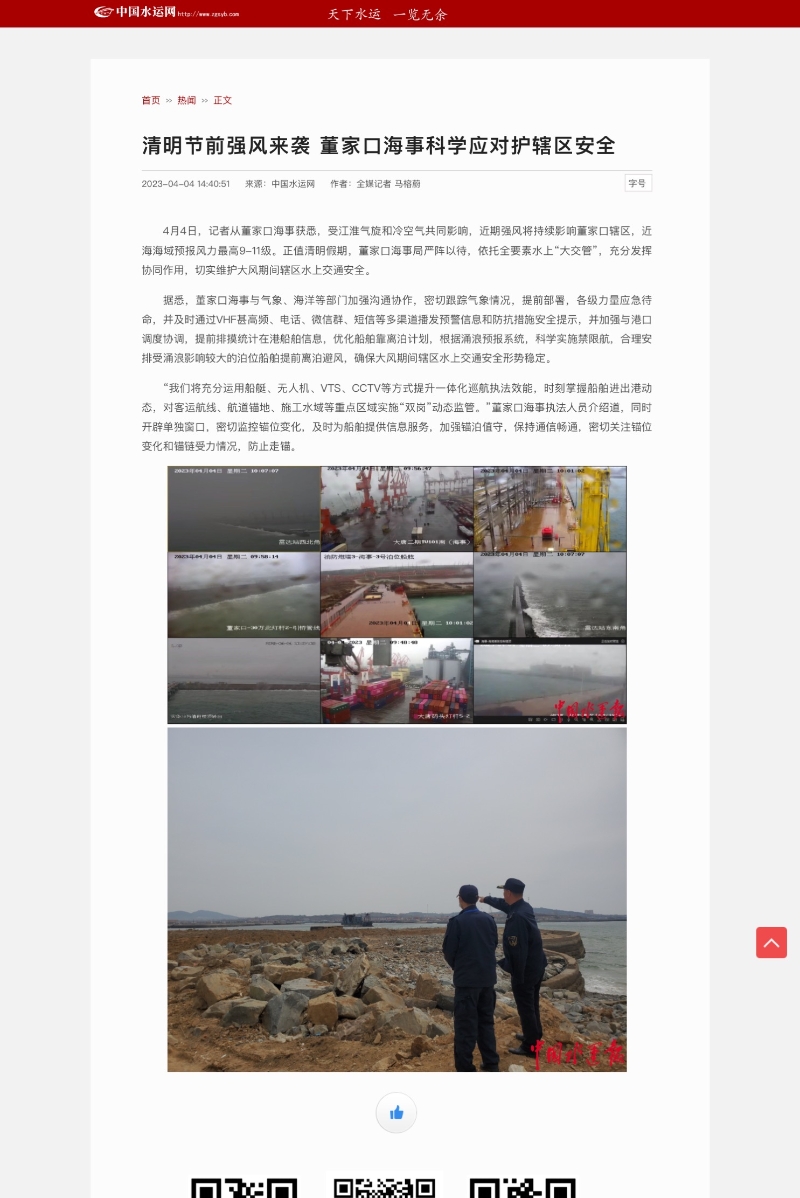 中国水运网:清明节前强风来袭,董家口海事科学应对护辖区安全