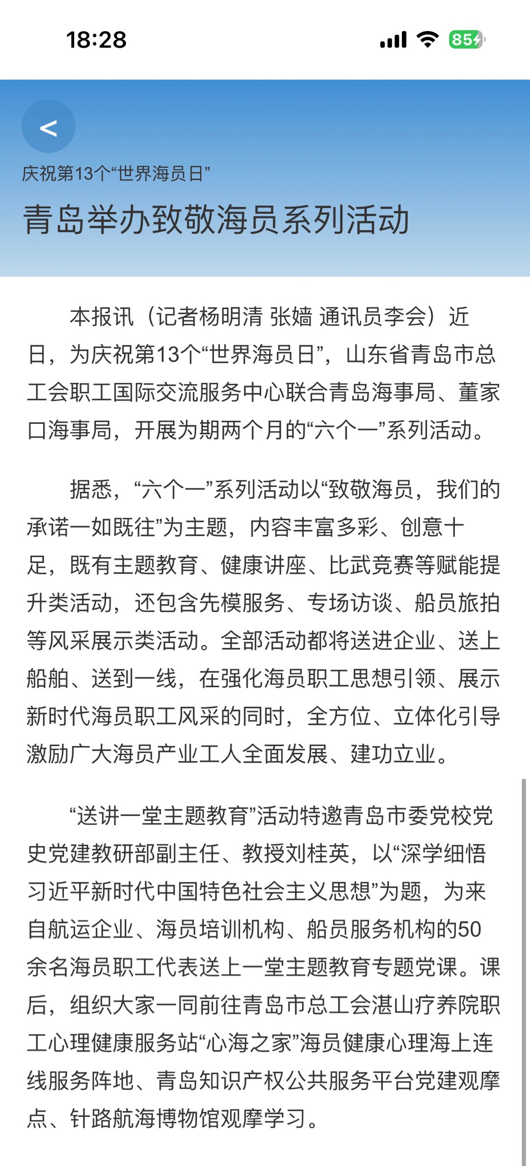 工人日报2版:庆祝第13个“世界海员日”青岛举办致敬海员系列活动