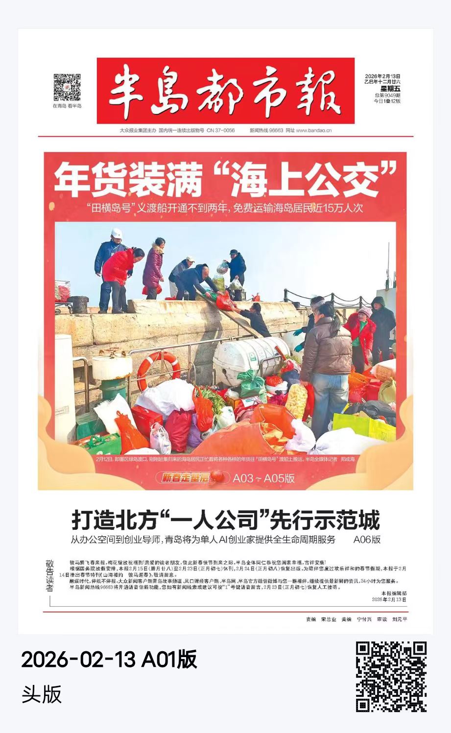 半岛都市报:年货装满“海上公交”